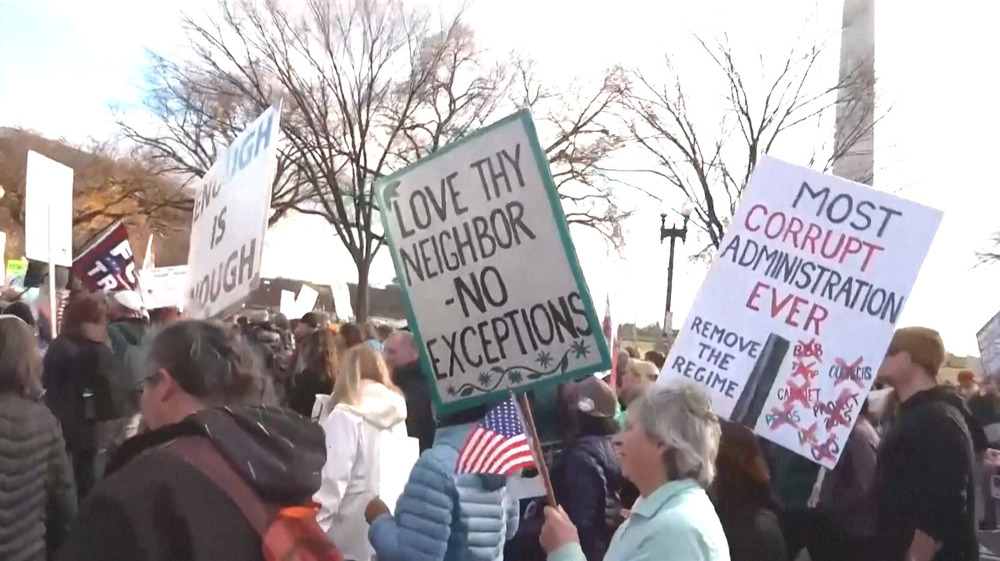 Demonstrators marched in Washington, DC, on Saturday after the Remove the Regime rally at the Lincoln Memorial, where protesters called for the impeachment, conviction, and removal of US President Donald J. Trump.